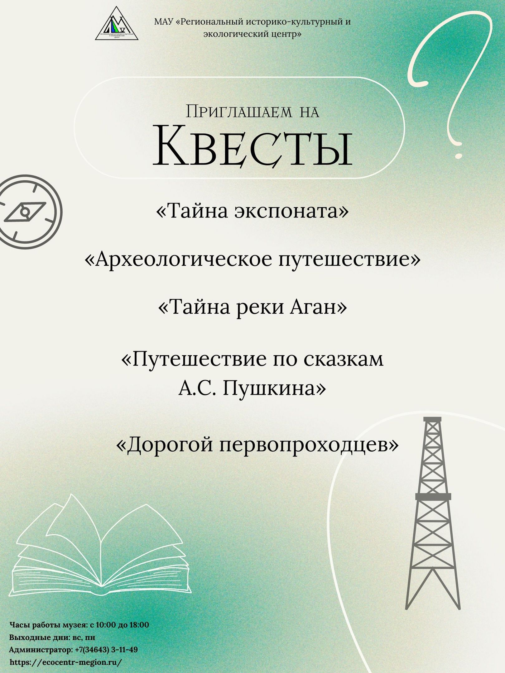 У нас вы можете поучаствовать в квестах, став археологом или первопроходцем в путешествии, или же разгадать тайны экспонатов.