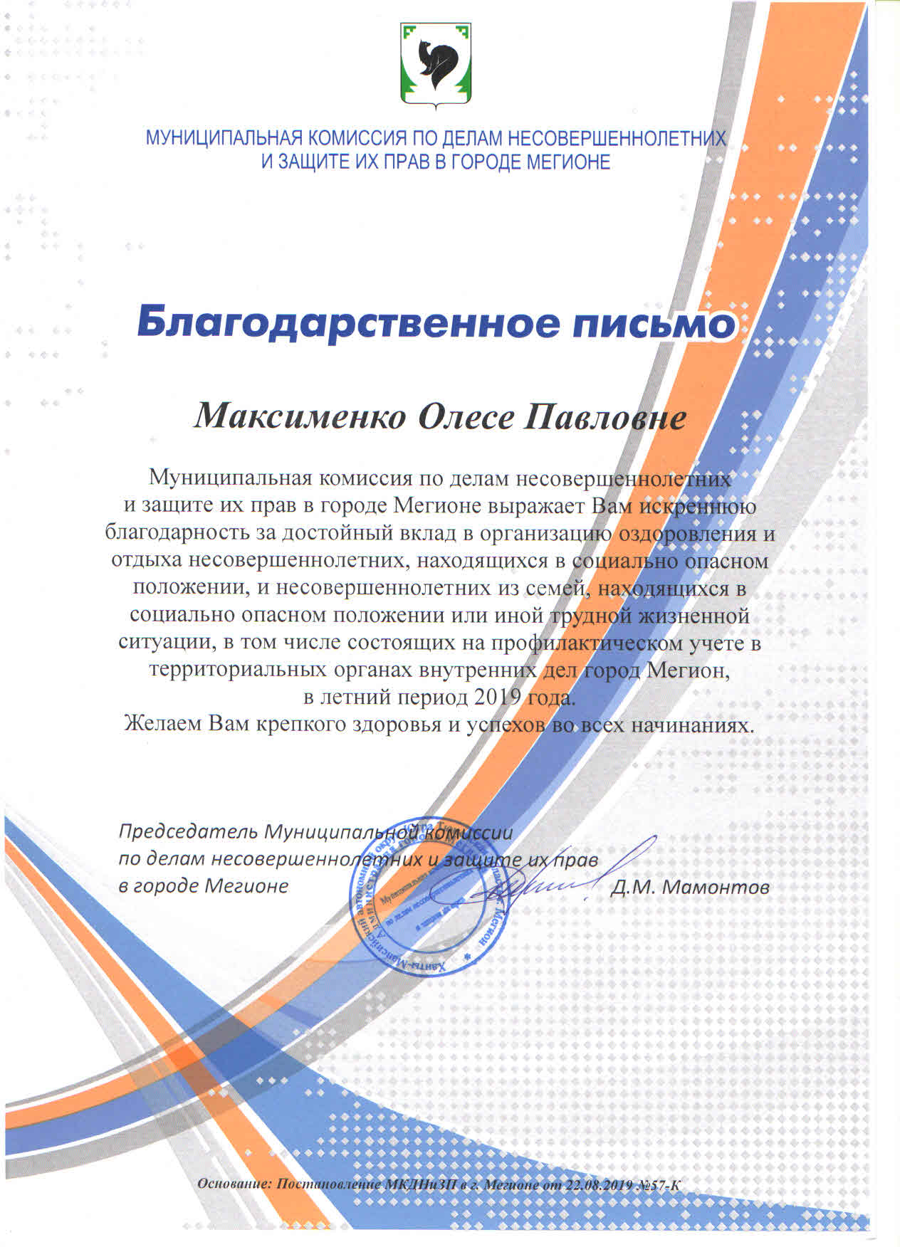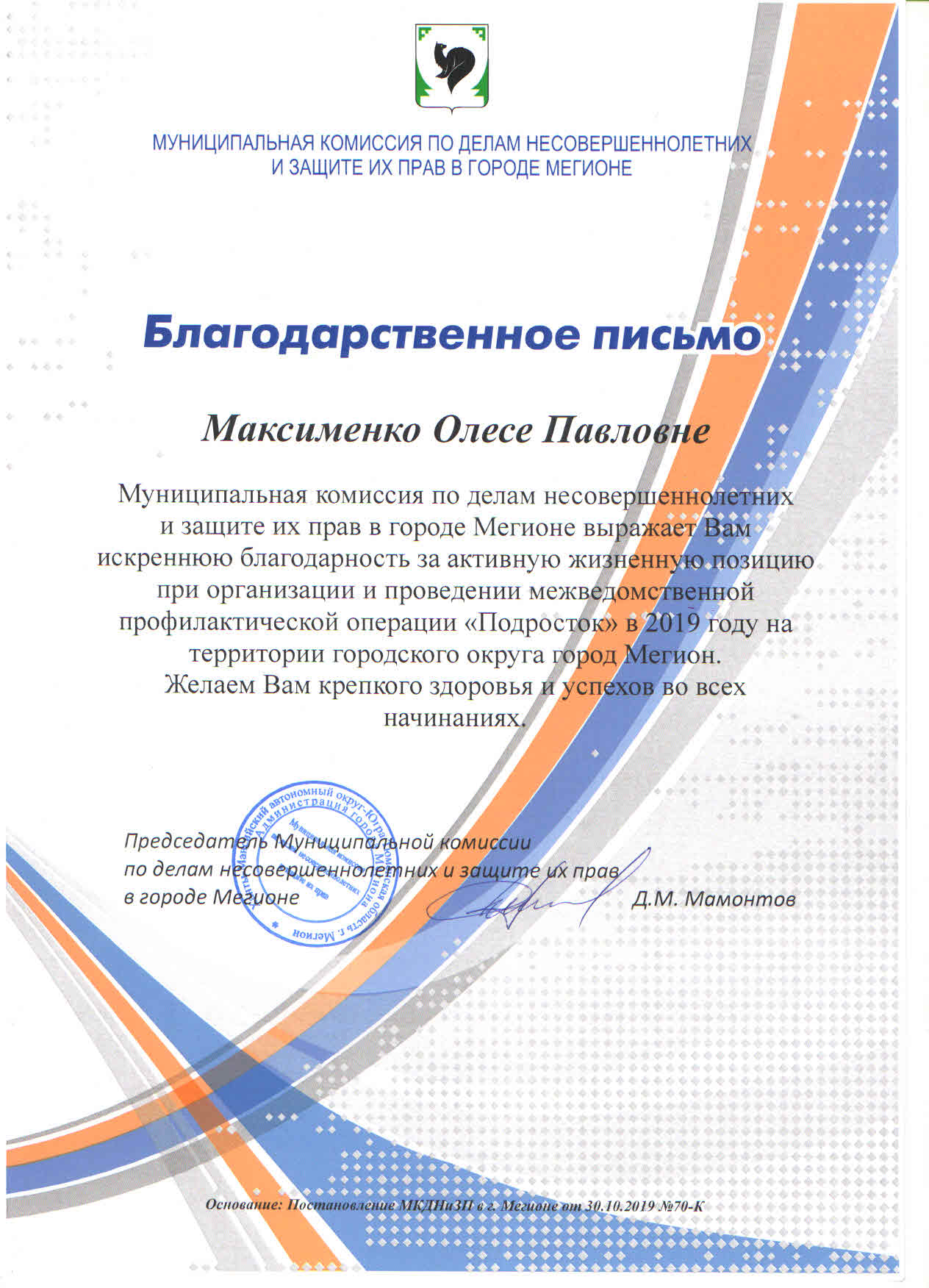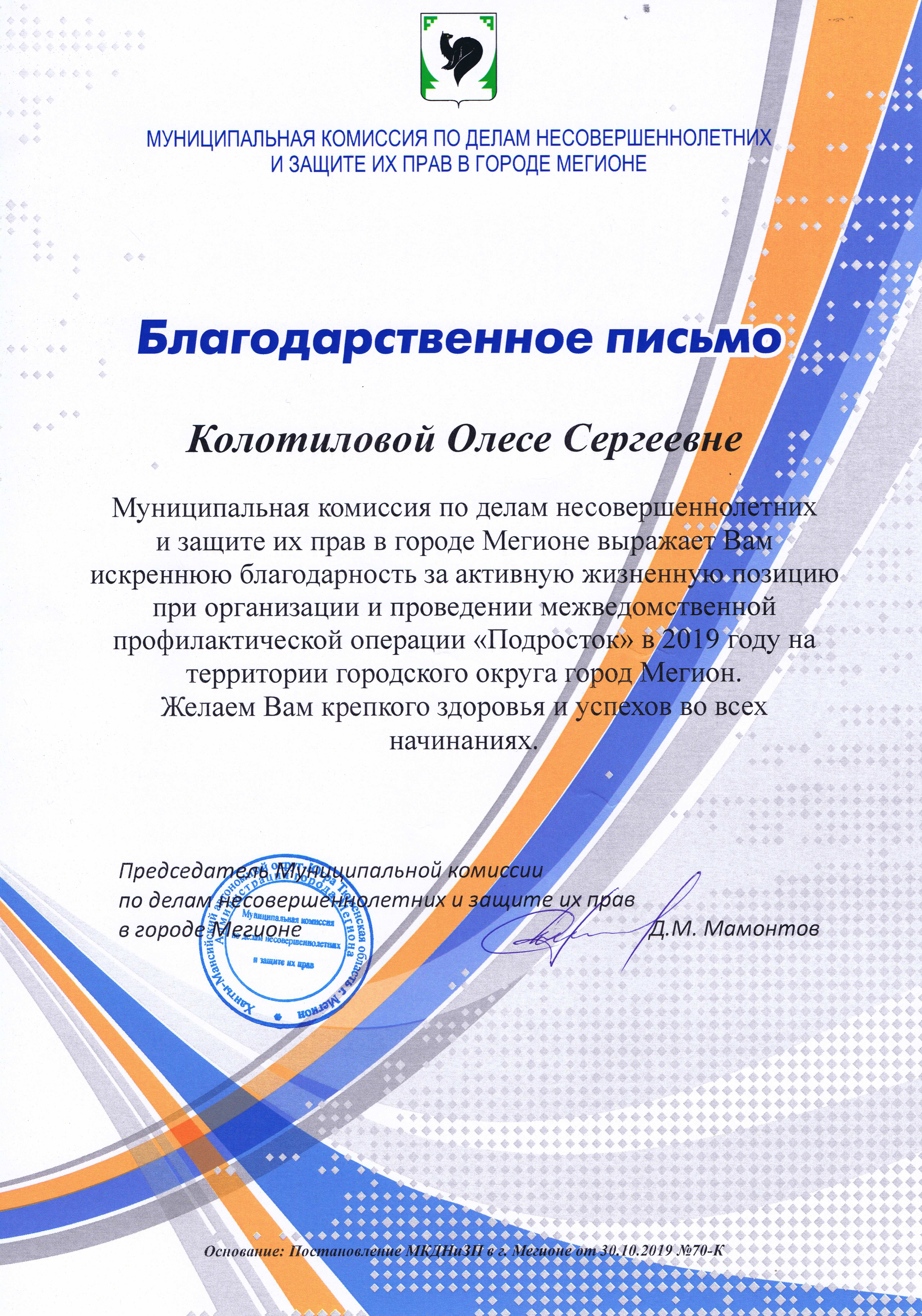 13 ноября в актовом зале Департамента образования и молодежной политики состоялось торжественное награждение Благодарственными письмами от муниципальной комиссии по делам несовершеннолетних и защите их прав в г. Мегионе. Среди участников были отмечены и сотрудники МАУ «Экоцентр» Максименко Олеся и Колотилова Олеся за активную жизненную позицию при организации и проведении межведомственной профилактической операции «Подросток» в 2019 году на территории городского округа города Мегиона. Благодарственные письма вручал Константин Георгиевич Мозоленко, начальник отдела по обеспечению деятельности муниципальной комиссии по делам несовершеннолетних. Гордимся нашими сотрудниками!