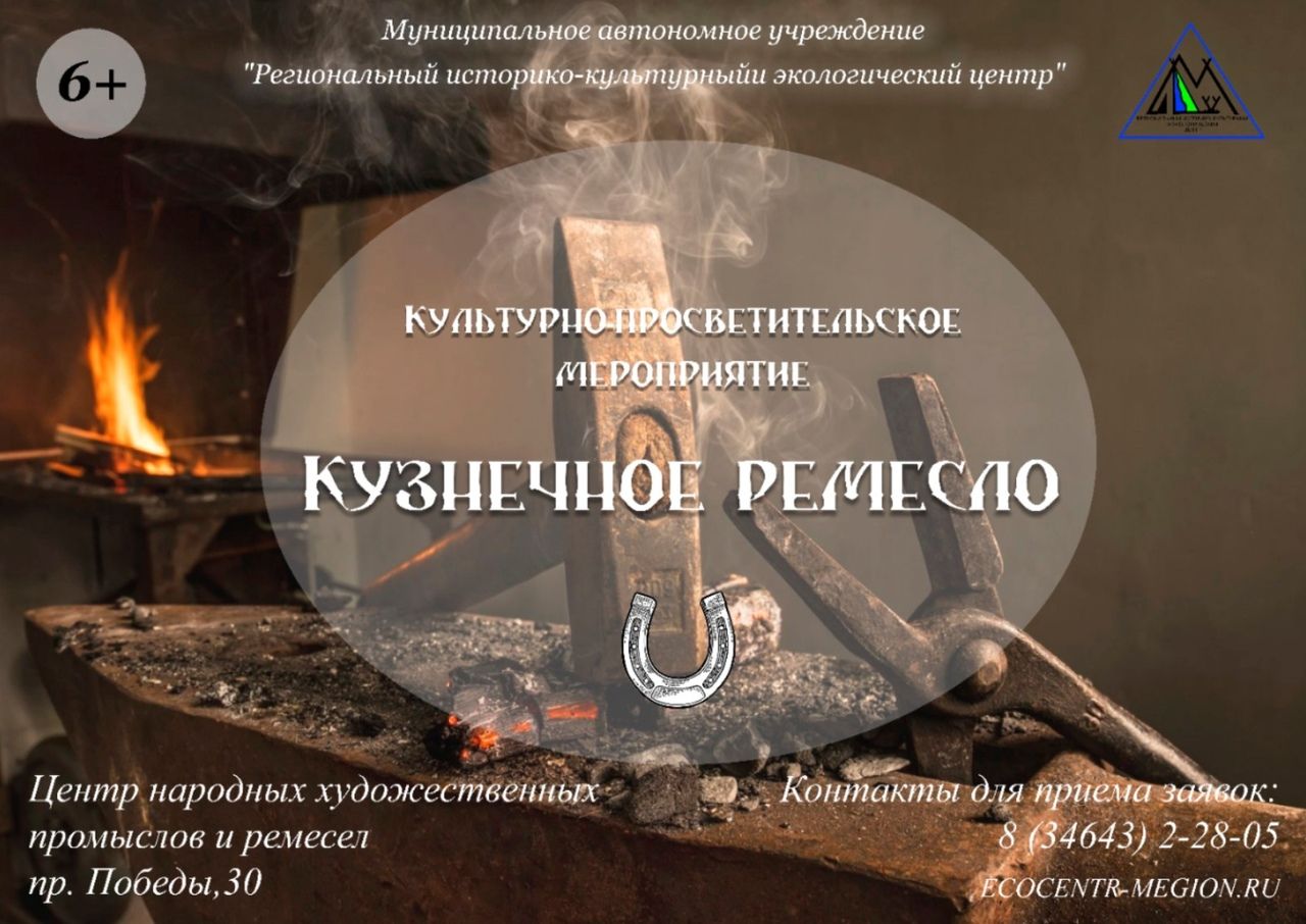 Центр народных художественных промыслов и ремесел приглашает на культурно-просветительское мероприятие «Кузнечное ремесло». В программе мероприятия: выставки «Кузнечное ремесло» и кузни «Наковальня счастья». Посетители ознакомятся с историей кузнечного ремесла, научатся работать с инструментами, необходимыми для работы в кузне, а также изготовят кованный сувенир. Мероприятие направлено на сохранение и развитие народных традиций.
