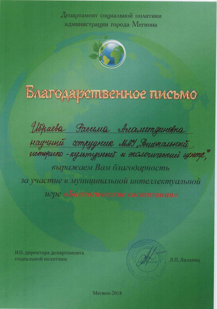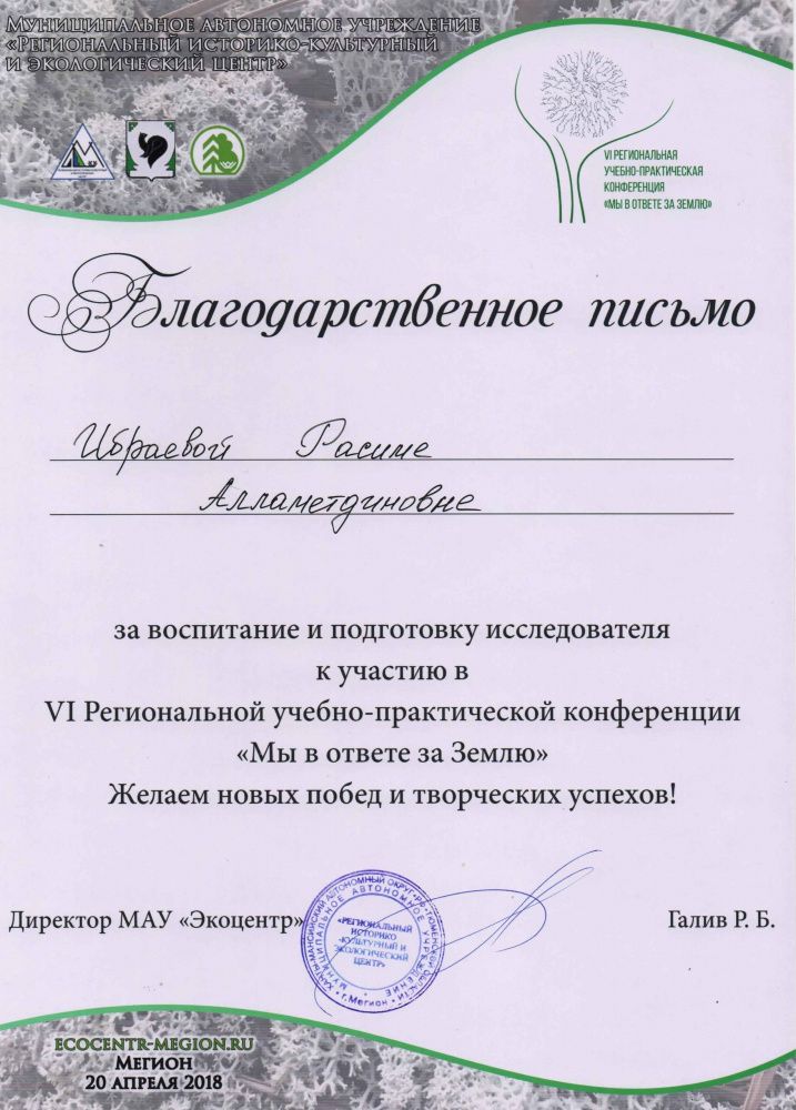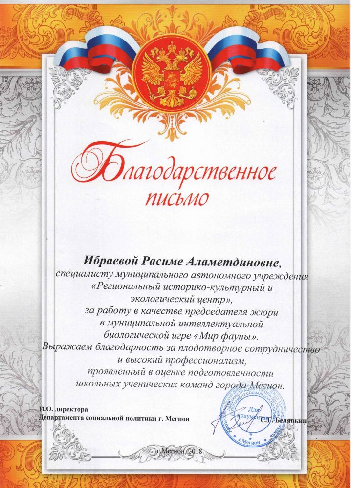 Благодарственное письмо