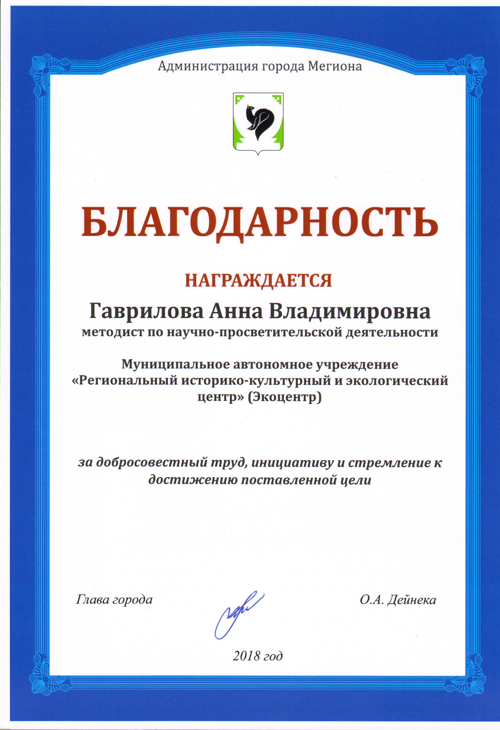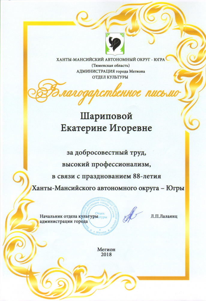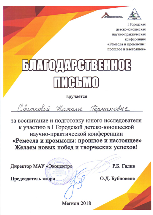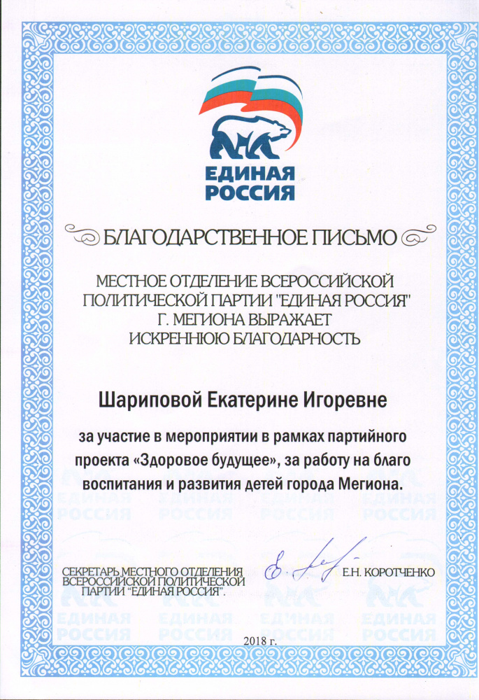 Благодарственное письмо