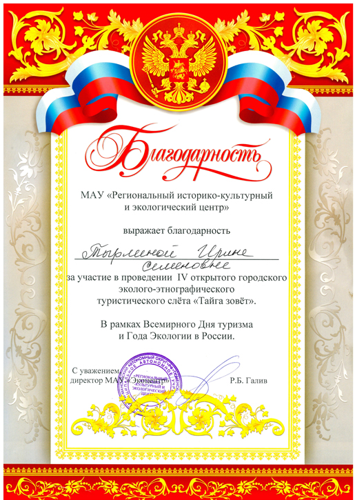 Благодарственное письмо