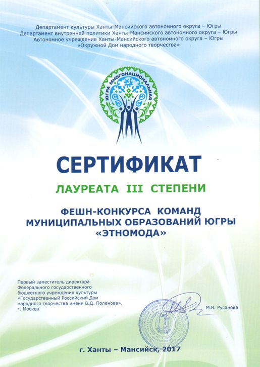 Сертификат лауреата 3 степени