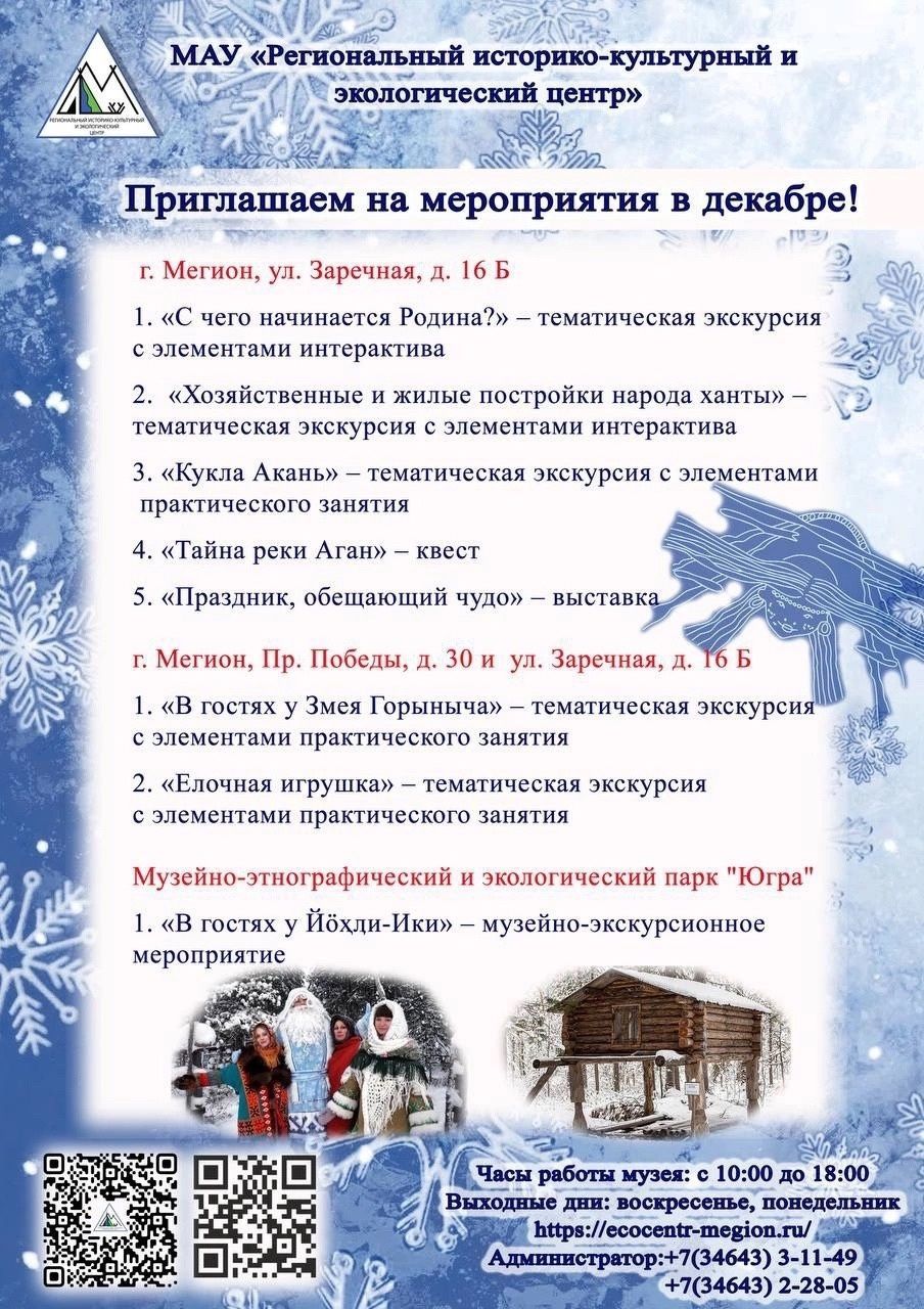 Дорогие друзья! В преддверии самого сказочного времени года спешим поделиться с Вами мероприятиями музея на декабрь.